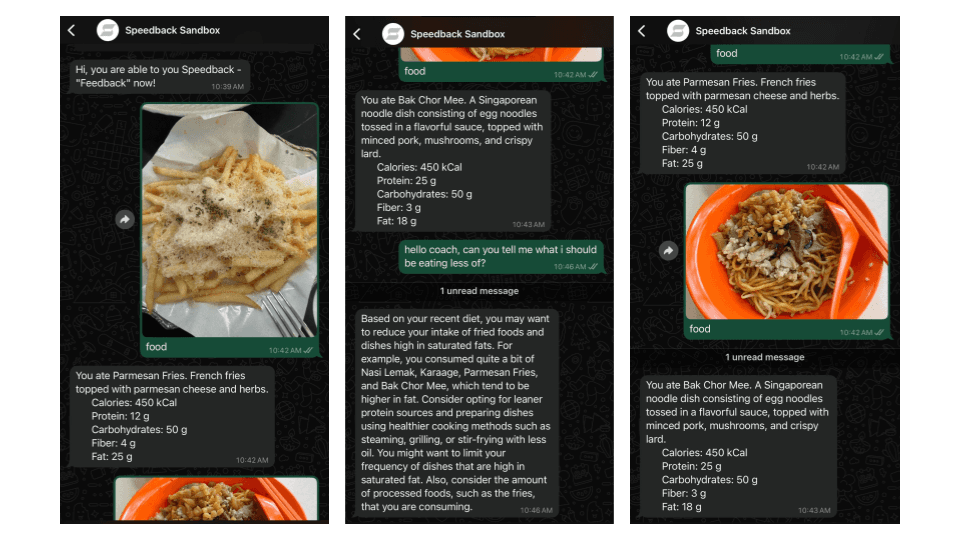 Feedback 是你的专属营养助手 — 无需额外应用,无需麻烦。只需拍下你的餐点照片,通过 WhatsApp 发送,即可立即获得卡路里分析和个性化反馈,帮助你更健康饮食、坚持目标、实现健康理想。